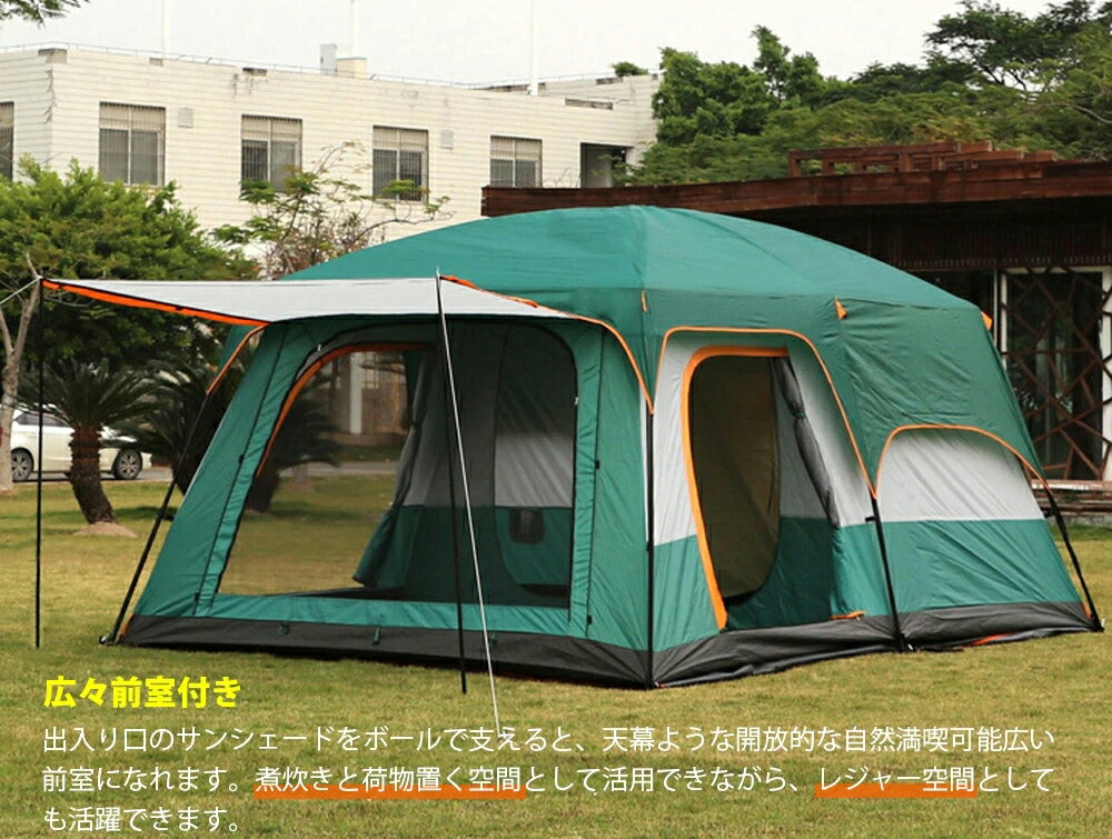 【10/4-10/11お買い物マラソン 2000円OFFクーポン+P5倍】【日本国内発送】Fengzel Outdoor キャノピーテント リビング+2ルーム付き 8-12人用 快適な居心地 防雨 日よけ 家族連れ 友達多人用 フライシート付き アウトドア キャンプ 大型 ファミリーテント