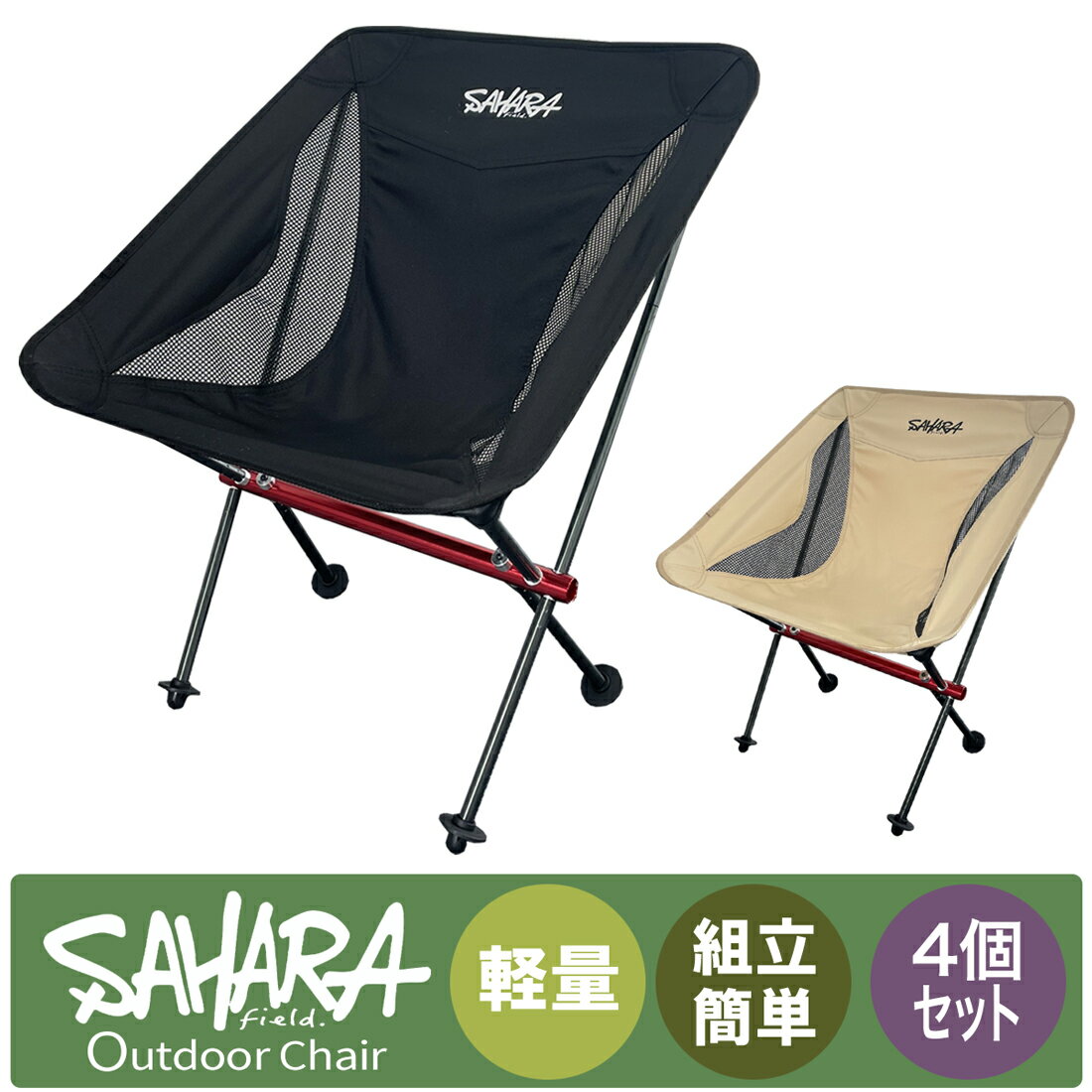 【最大19倍 エントリーポイント+限定ポイント】FieldSAHARA アウトドアチェア 【4個セット】キャンプ椅子 キャンプチェア 軽量 防災 おすすめ 折りたたみ椅子 コンパクト フェス 運動会 釣り 防災用品 備蓄品 防災セット 震災 避難所